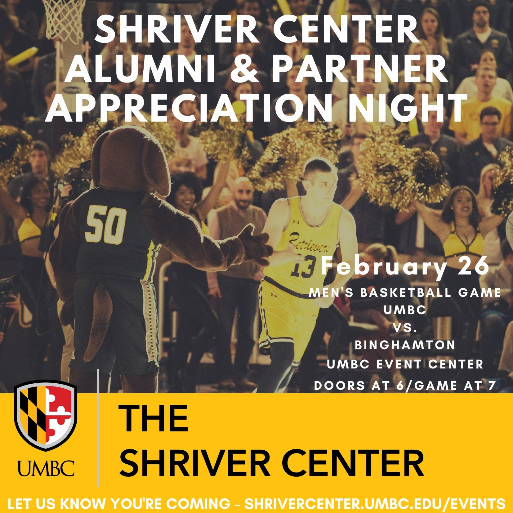 The Shriver Center kicks off UMBC's Giving Day (Thursday, 2/27) for our 2nd Annual Shriver Center Alumni & Partner Appreciation Night at the UMBC Event Center.